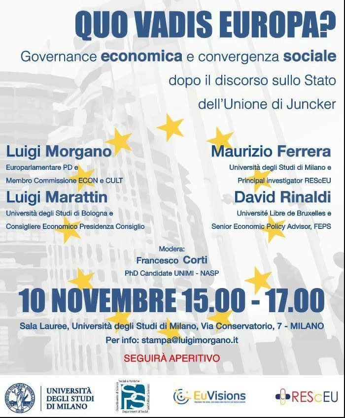 The conference is organized in the context of Prof. Maurizio Ferrera's ERC project and aims at bringing academics and policymakers together, debating on the future challenges of the European Union and the appealing scenario of a European Social Union.